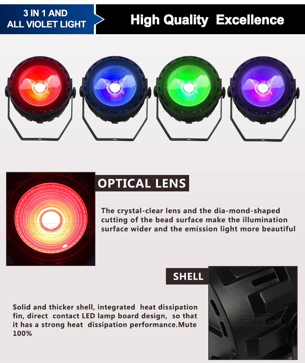 Deze compacte COB50, is handig om mee te nemen en zijn krachtige lichtbundel is perfect voor een optimale sfeer op de dansvloer. Deze RGB Spot is voorzien van een 50W LED met COB-technologie (chip-on-board), waardoor een hoger rendement en je elke keurmengeling perfect kan maken. Verder zijn alle mogelijke functies aanwezig; dimmer, stroboscoop-functie, verschillende automatische programma's, geluidsgestuurd, DMX sturing via 7 kanalen.