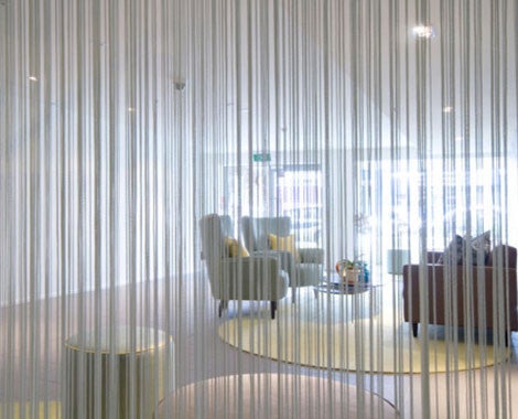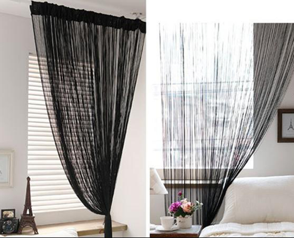 Komt werkelijk overal van pas: als deur, als kamerverdeler, als decoratief gordijn. Verkrijgbaar in zwart en wit.
