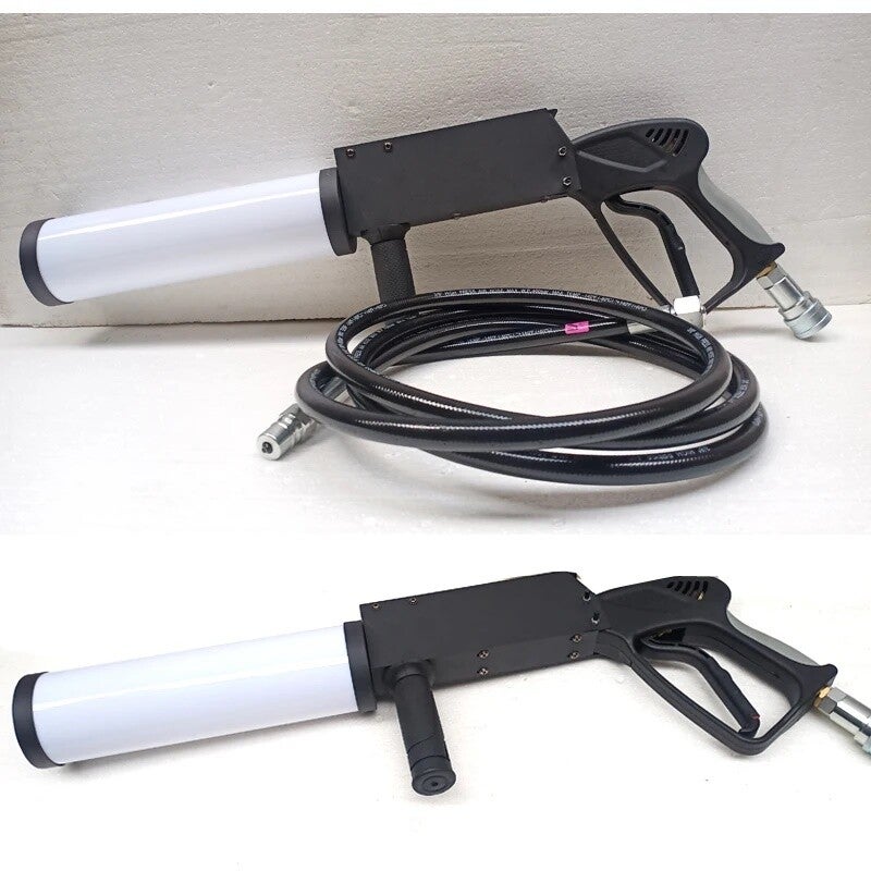 De First Class CO2 Gun is een handheld shooter die in korte tijd grote witte rookwolken kan afvuren. De First Class CO2 Gun is een nieuwe, innovatieve en spectaculaire eye catcher voor DJ's, dansgroepen en discotheken. Het dient te worden verbonden met een CO2 cilinder met stijgbuis (vloeibaar CO2) door middel van een flexibele CO2 slang.
