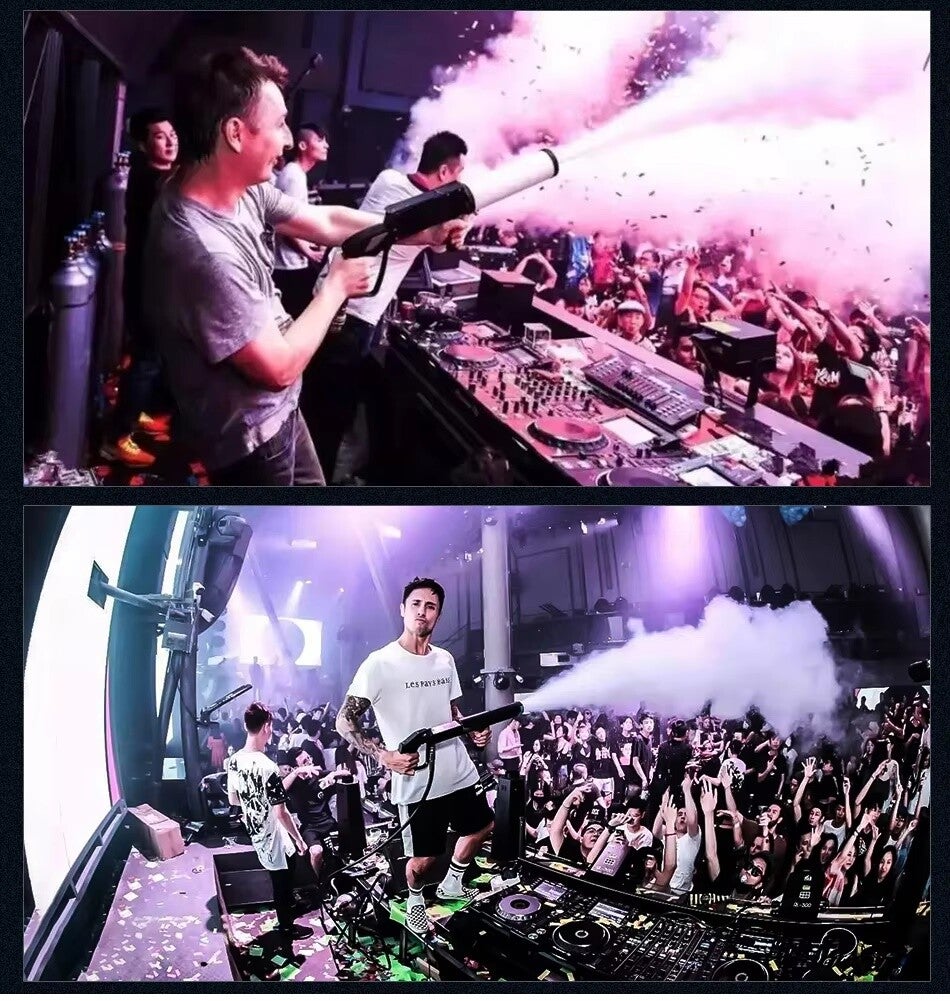 Met de First Class CO2 gun II schiet je grote, dikke, witte rookpluimen de lucht of het publiek in. Een erg gaaf effect wat we steeds vaker zien op festivals.