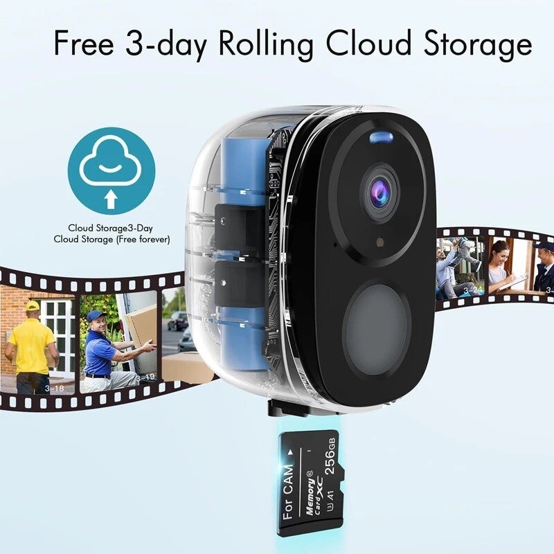 Draadloze buitencamera met een ingebouwde hoogwaardige oplaadbare batterij. Het is een echte beveiligingscamera met laag stroomverbruik voor thuis. Geen behoefte aan om het even welke draden, kan worden geïnstalleerd waar u wilt. Binnen-en buitenscènes in een oogopslag. Eenvoudig te installeren, kan de hoek aanpassen of naar believen demonteren.