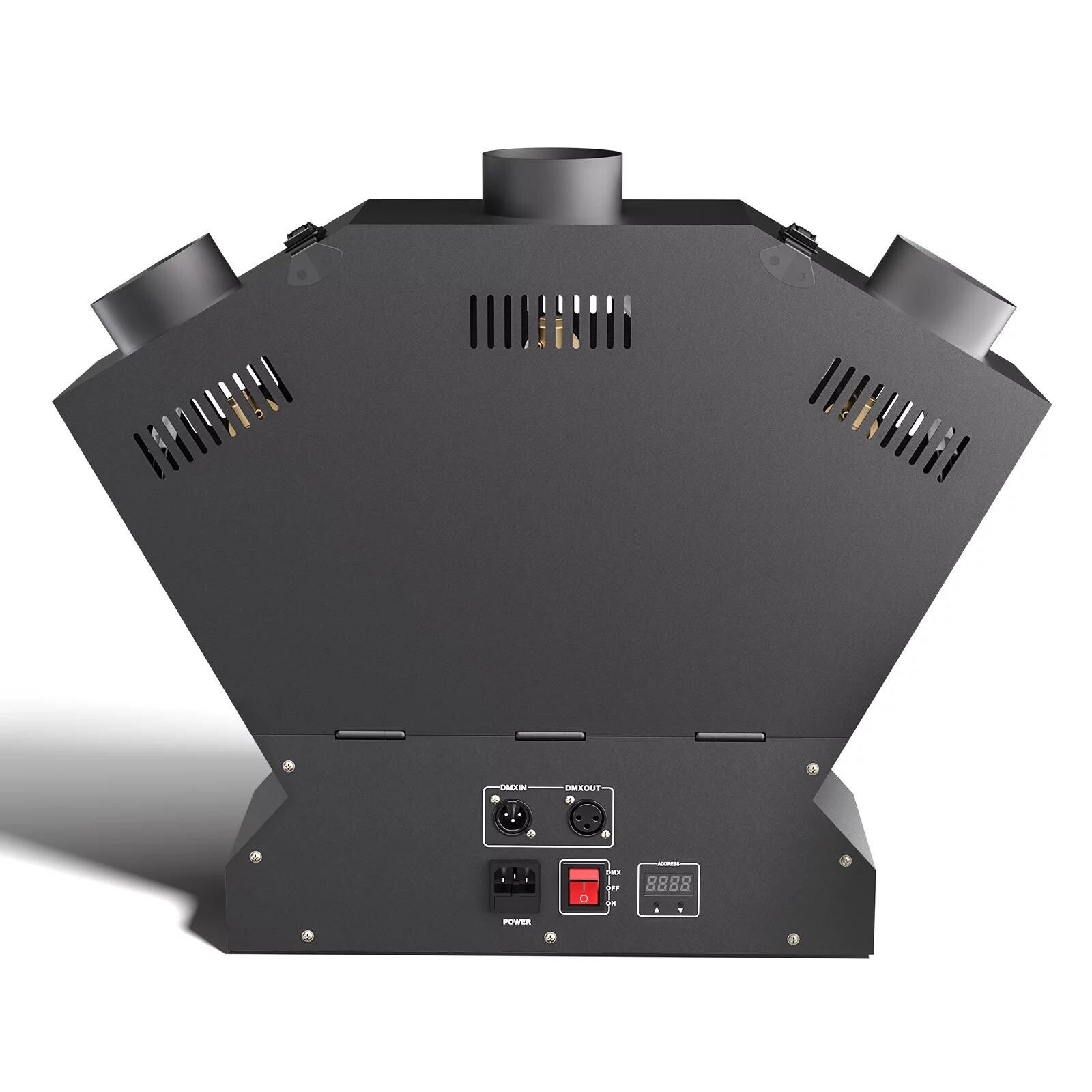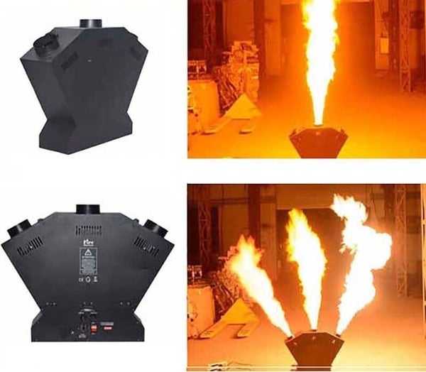 Het effect bestaat uit een vlammenwerper met 3 koppen, die volledig via DMX aangestuurd kan worden.
