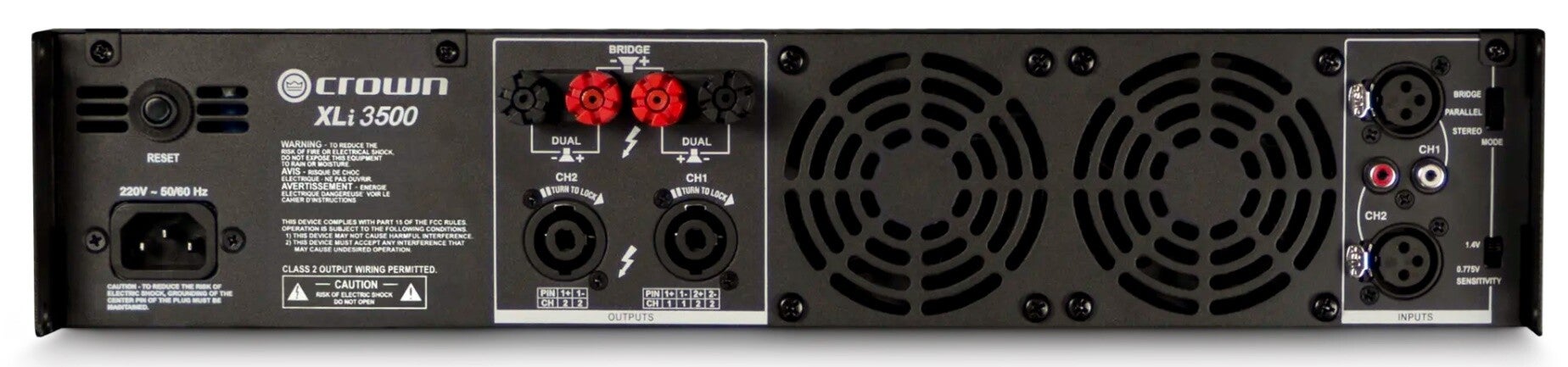 Bij de naam Crown denkt u waarschijnlijk gelijk aan een krachtige, innovatieve en degelijke versterker, zo ook deze XLi3500. Hij is ontworpen en gebouwd voor de technicus met een beperkt budget, die wel een kwalitatief geluid wenst. Hij heeft een vermogen van 1350 Watt per kanaal aan 4 Ohm, 1000 Watt per kanaal bij 8 Ohm en maar liefst 2700 Watt bij een 8 Ohm mono-bridge.